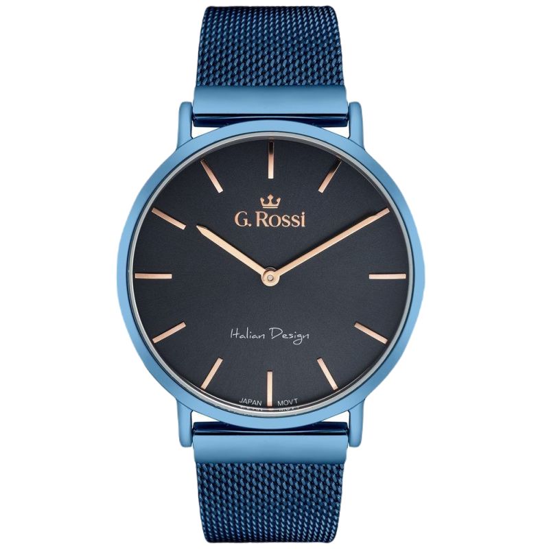 G.Rossi ist eine Marke, die mit uhrmacherischer Präzision Eleganz mit den Feinheiten zeitgenössischer Trends verbindet und so Zeitmesser voller Charakter und Stil kreiert. Die Uhren von G.Rossi sind für all jene entworfen, die mehr als nur Pünktlichkeit suchen und die Bedürfnisse von Schönheitsliebhabern, Individualisten und Kennern von Details, die für sich sprechen, erfüllen. Die Kollektionen von G.Rossi umfassen eine breite Palette an Stilen – von dezenten, klassischen Modellen bis hin zu avantgardistischen Uhren, die mit funkelnden Kristallen besetzt sind, die wie Sonnenreflexe auf einem spiegelglatten See glitzern. Ihre eleganten Edelstahlarmbänder, Echtlederarmbänder und luftigen Mesh-Armbänder schmiegen sich wie ein modisches Statement ans Handgelenk. Die verwendeten Materialien garantieren nicht nur Langlebigkeit, sondern erinnern uns auch auf subtile Weise an den Luxus und die Freude, Accessoires mit einzigartigem Stil zu tragen.