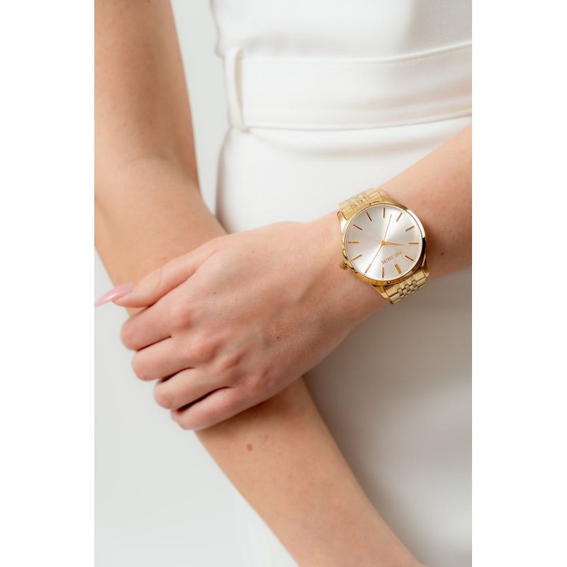 Die glatte, dezent schimmernde Oberfläche schmiegt sich harmonisch ans Handgelenk und sorgt für ganztägigen Tragekomfort. Die präzise Konturierung passt sich perfekt der weiblichen Hand an, betont dezent die schlanke Form des Handgelenks und verleiht jedem Outfit einen Hauch von Eleganz. Edelstahl vereint Langlebigkeit und Leichtigkeit und macht die Uhr dadurch besonders angenehm zu tragen. Das Armbanddesign vereint Luxus und schlichte Eleganz und macht die Uhr somit ideal für Abendveranstaltungen und den Alltag. Das Paul Lorens Logo auf der Armbandschließe rundet den Look ab.