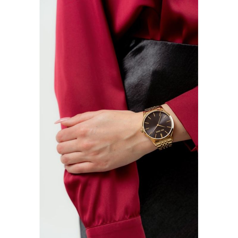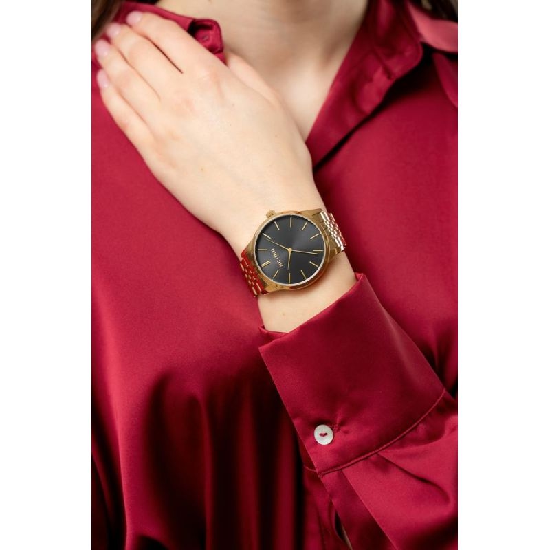 Die glatte, dezent schimmernde Oberfläche schmiegt sich harmonisch ans Handgelenk und sorgt für ganztägigen Tragekomfort. Die präzise Konturierung passt sich perfekt der weiblichen Hand an, betont dezent die schlanke Form des Handgelenks und verleiht jedem Outfit einen Hauch von Eleganz. Edelstahl vereint Langlebigkeit und Leichtigkeit und macht die Uhr dadurch besonders angenehm zu tragen. Das Armbanddesign vereint Luxus und schlichte Eleganz und macht die Uhr somit ideal für Abendveranstaltungen und den Alltag. Das Paul Lorens Logo auf der Armbandschließe rundet den Look ab.