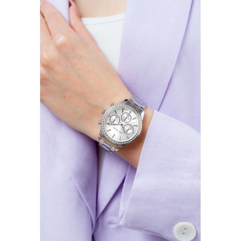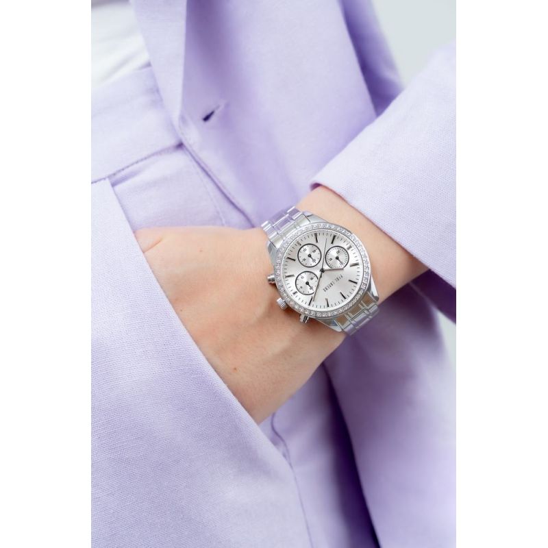 Die glatte, dezent schimmernde Oberfläche schmiegt sich harmonisch ans Handgelenk und sorgt für ganztägigen Tragekomfort. Die präzise Konturierung passt sich perfekt der weiblichen Hand an, betont dezent die schlanke Form des Handgelenks und verleiht jedem Outfit einen Hauch von Eleganz. Edelstahl vereint Langlebigkeit und Leichtigkeit und macht die Uhr dadurch besonders angenehm zu tragen. Das Armbanddesign vereint Luxus und schlichte Eleganz und macht die Uhr somit ideal für Abendveranstaltungen und den Alltag. Das Paul Lorens Logo auf der Armbandschließe rundet den Look ab.