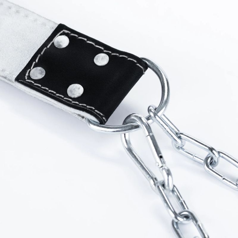 Die Schnallen der Kettenbefestigung sind mit vier robusten Nieten verstärkt und gewährleisten absolute Sicherheit bei intensiven Trainingseinheiten. Dadurch ist der Gürtel außergewöhnlich belastbar und garantiert seine Zuverlässigkeit auch unter härtesten Bedingungen.