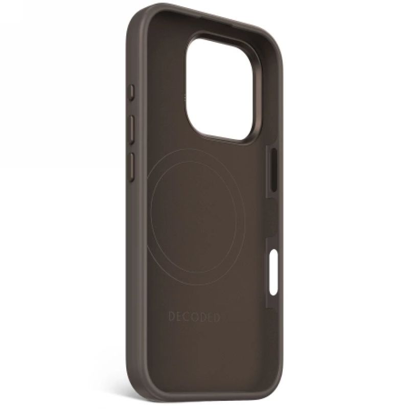 DECODED IST ZEITLOSES DESIGN Decoded kreiert luxuriöse Accessoires für mobile Geräte, die sich durch eine harmonische Kombination aus klassischem Design und fortschrittlicher Funktionalität auszeichnen. Jedes Decoded-Gehäuse ist mit zarten Akzenten versehen, die ihm ein einzigartiges Aussehen verleihen. SCHUTZ MIT GUTEM STIL Die Decoded-Hülle besteht aus hochwertigem Flüssigsilikon mit seidig glatter Oberfläche. Durch die Verwendung dieses Materials wird die Farbe des Gehäuses hervorgehoben, was zu einem einzigartigen Stilakzent wird. ABSORBIERT STÖßE Die scheinbare Feinheit von Silikon ist tatsächlich resistent gegen die Auswirkungen von Stößen und bietet die perfekte Kombination aus leichtem Design und vollständigem Schutz des iPhones. Die innere Struktur der Hülle absorbiert effektiv die Aufprallkraft, sodass das Gerät intakt bleibt, wenn das Telefon in die Hülle fällt. Das Gehäuse besteht aus Silikon mit antibakteriellen Eigenschaften. KEINE KRATZER Platzieren und bewegen Sie Ihr Telefon bedenkenlos auf einem Schreibtisch, Tisch oder einer anderen ebenen Fläche. Das Gehäuse verfügt über einen zweilagigen, eloxierten Metallring um die Kamera, wodurch die Objektive vor Kratzern geschützt sind. MAGSAFE UND KABELLOSES LADEN. Dank des im Gehäuse integrierten Magnetmoduls ist es mit der MagSafe-Funktionalität und den meisten kabellosen Ladegeräten kompatibel . Die Hülle gewährleistet eine genaue Positionierung des Telefons am Ladepunkt des kabellosen MagSafe-Ladegeräts. Platzieren Sie Ihr Telefon einfach an der Ladematrix und beide Geräte passen perfekt zueinander und sorgen für einen stabilen Ladevorgang.