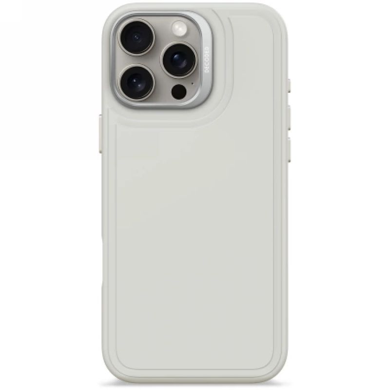 DECODED IST ZEITLOSES DESIGN Decoded kreiert luxuriöse Accessoires für mobile Geräte, die sich durch eine harmonische Kombination aus klassischem Design und fortschrittlicher Funktionalität auszeichnen. Jedes Decoded-Gehäuse ist mit zarten Akzenten versehen, die ihm ein einzigartiges Aussehen verleihen. SCHUTZ MIT GUTEM STIL Die Decoded-Hülle besteht aus hochwertigem Flüssigsilikon mit seidig glatter Oberfläche. Durch die Verwendung dieses Materials wird die Farbe des Gehäuses hervorgehoben, was zu einem einzigartigen Stilakzent wird. ABSORBIERT STÖßE Die scheinbare Feinheit von Silikon ist tatsächlich resistent gegen die Auswirkungen von Stößen und bietet die perfekte Kombination aus leichtem Design und vollständigem Schutz des iPhones. Die innere Struktur der Hülle absorbiert effektiv die Aufprallkraft, sodass das Gerät intakt bleibt, wenn das Telefon in die Hülle fällt. Das Gehäuse besteht aus Silikon mit antibakteriellen Eigenschaften. KEINE KRATZER Platzieren und bewegen Sie Ihr Telefon bedenkenlos auf einem Schreibtisch, Tisch oder einer anderen ebenen Fläche. Das Gehäuse verfügt über einen zweilagigen, eloxierten Metallring um die Kamera, wodurch die Objektive vor Kratzern geschützt sind. MAGSAFE UND KABELLOSES LADEN. Dank des im Gehäuse integrierten Magnetmoduls ist es mit der MagSafe-Funktionalität und den meisten kabellosen Ladegeräten kompatibel . Die Hülle gewährleistet eine genaue Positionierung des Telefons am Ladepunkt des kabellosen MagSafe-Ladegeräts. Platzieren Sie Ihr Telefon einfach an der Ladematrix und beide Geräte passen perfekt zueinander und sorgen für einen stabilen Ladevorgang.