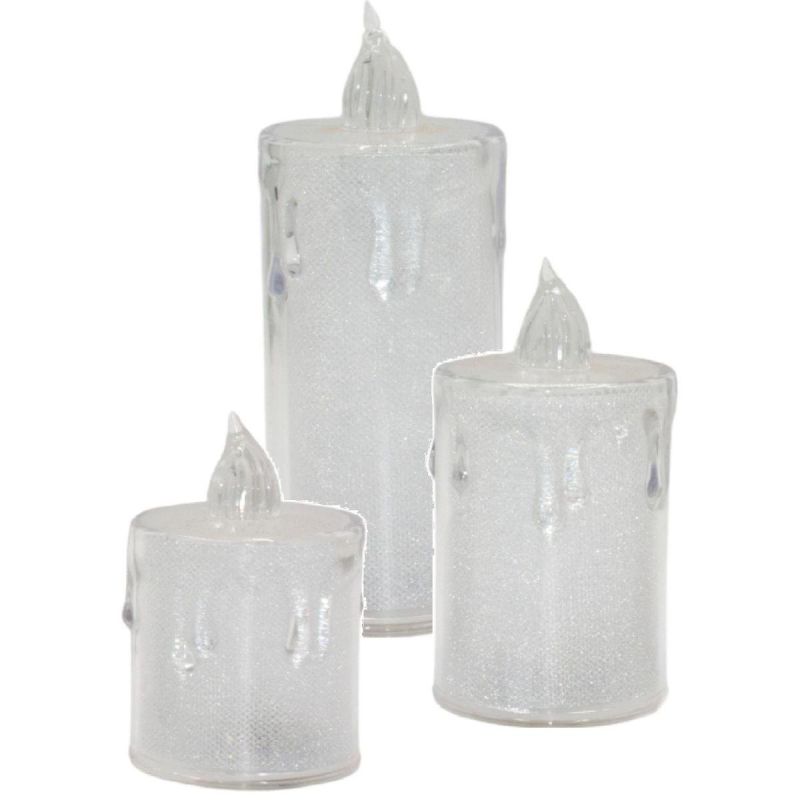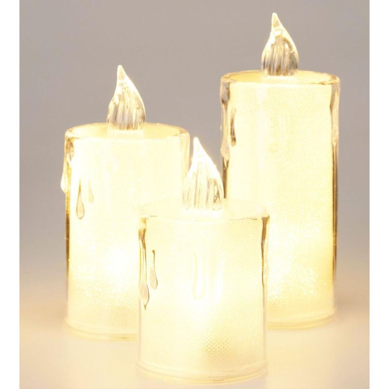 Dekorative Kerzen, 3 Stück, transparent, warmweiß, 1 LED