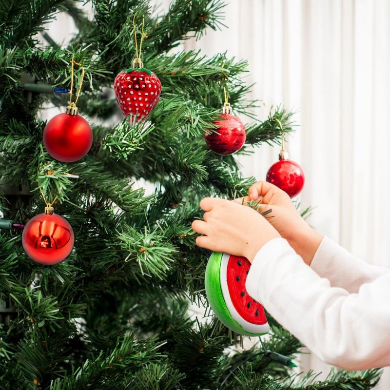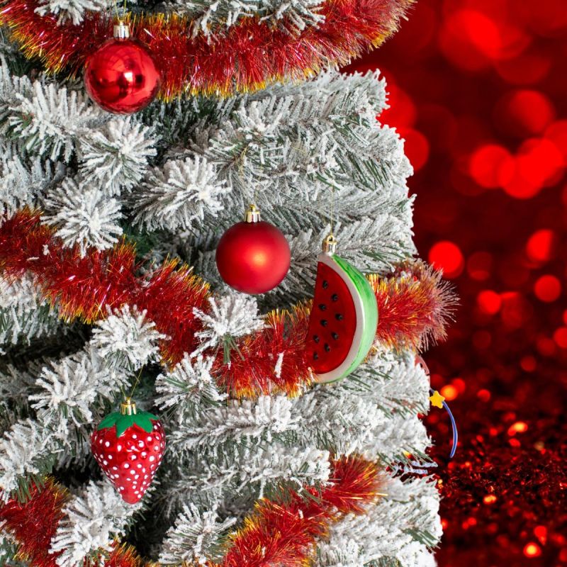 Dein Weihnachtsbaum verdient eine gesunde Ernährung! Statt langweiligem Christbaumschmuck häng doch Erdbeeren und Wassermelonen an Glimmer. Bruchsicher, farbenfroh und absolut einzigartig – da fragt selbst der Weihnachtsmann nach dem Rezept für so ein leckeres Fest!