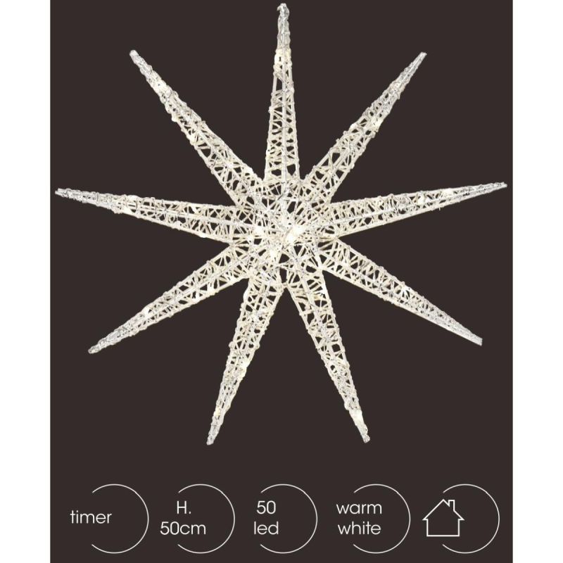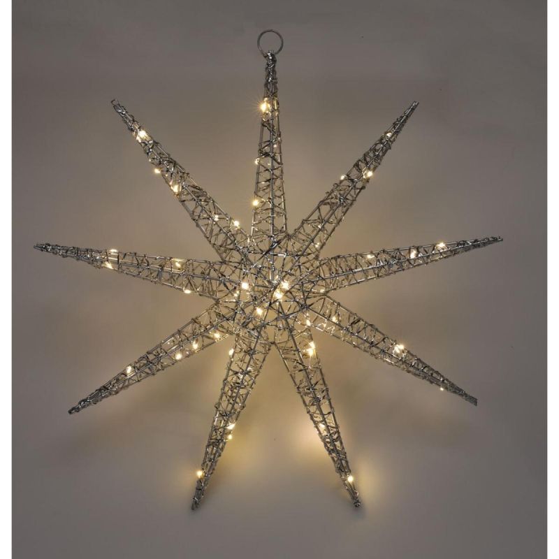 Die dekorative Schneeflocken-Hängeleuchte mit 50 LEDs in Silber ist eine elegante Dekoration, die perfekt in die Weihnachtsstimmung passt, aber auch im Alltag gut zur Geltung kommt.