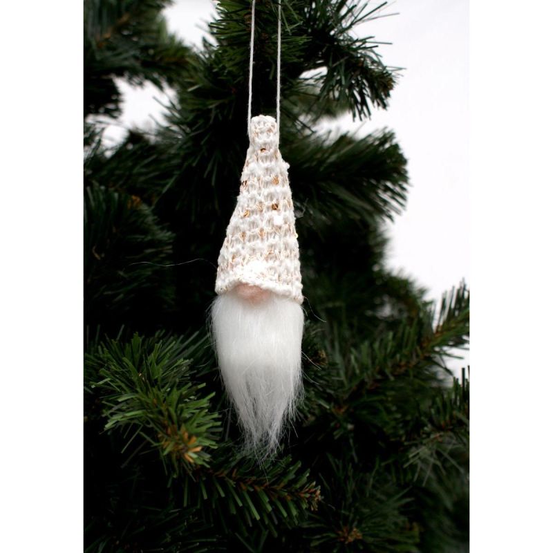 Dekorativer Anhänger Weihnachtsmann, 11 cm, weiße Pailletten