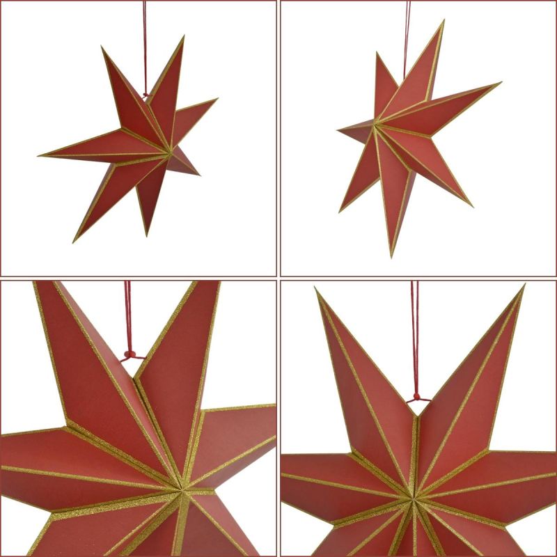 Möchten Sie Ihrem Zuhause festlichen Zauber verleihen, ohne dabei auf überflüssigen Plastikmüll zu setzen? Dann ist der FSC®-zertifizierte, 14 x 45 cm große Hängestern aus rotem Papier mit 7 Armen aus Glimmer genau das Richtige für Sie – eine umweltfreundliche, leichte und stilvolle Dekoration mit einzigartigem Design.