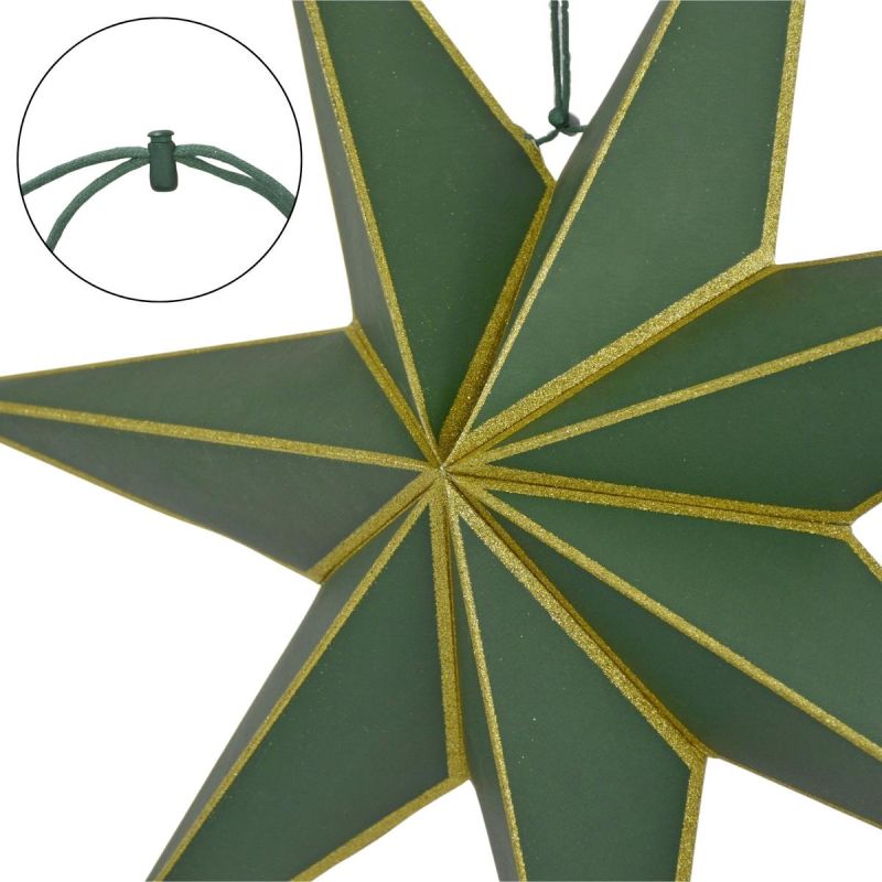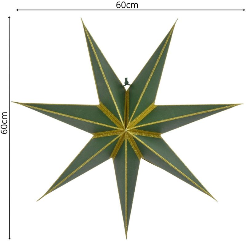 Dekorativer Hängestern aus Papier, FSC-zertifiziert, 18 x 60 cm, grün, 7 Arme, Glimmer
