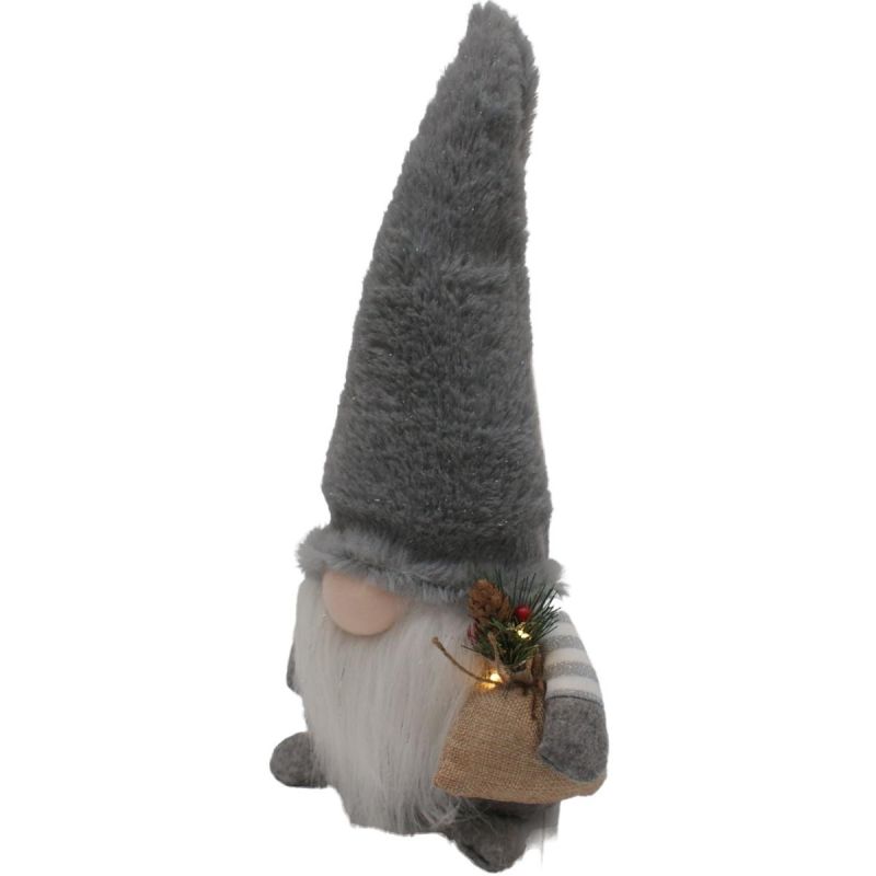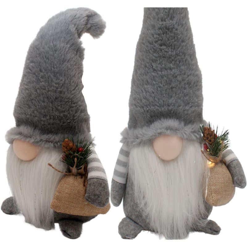 Dekorativer Plüsch-LED-Gartenzwerg 38 cm, grau