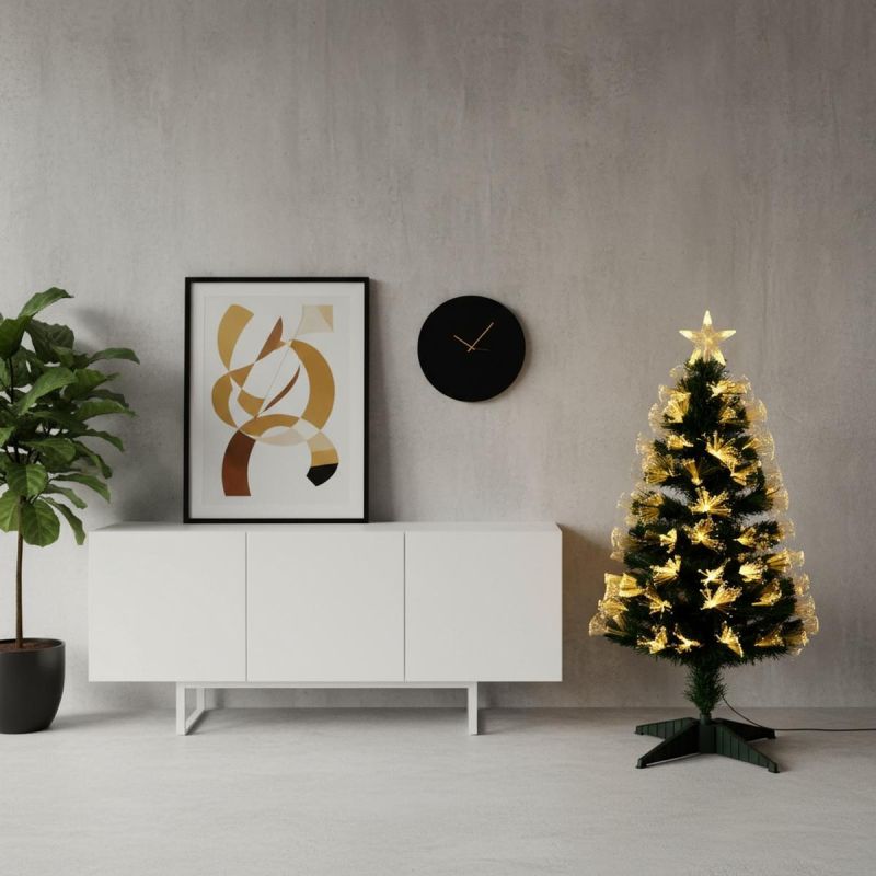Ein dekorativer Weihnachtsbaum mit Glasfaserbeleuchtung ist die perfekte Ergänzung für Ihre Inneneinrichtung und verleiht ihr einen Hauch von festlicher Magie. Dank der integrierten Glasfaserbeleuchtung erstrahlt der Baum in warmweißem Licht und erzeugt so einen einzigartigen Lichteffekt.