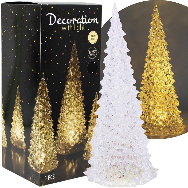Dekorativer Weihnachtsbaum, transparent, warmweiß, 27 cm