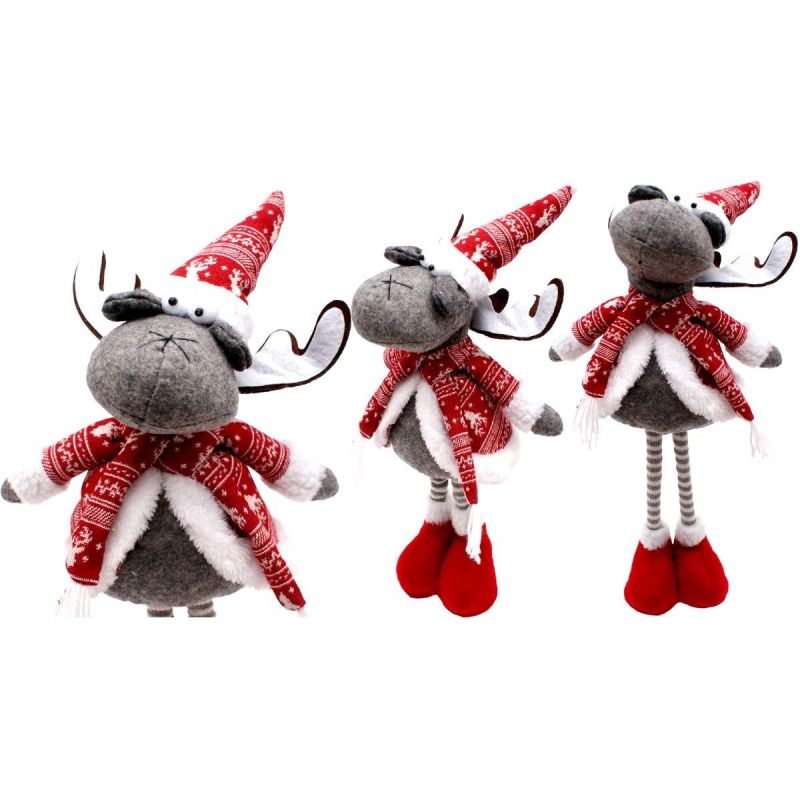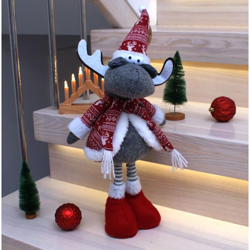 Dekoratives Rentier auf Teleskopbeinen, 45–60 cm, rot