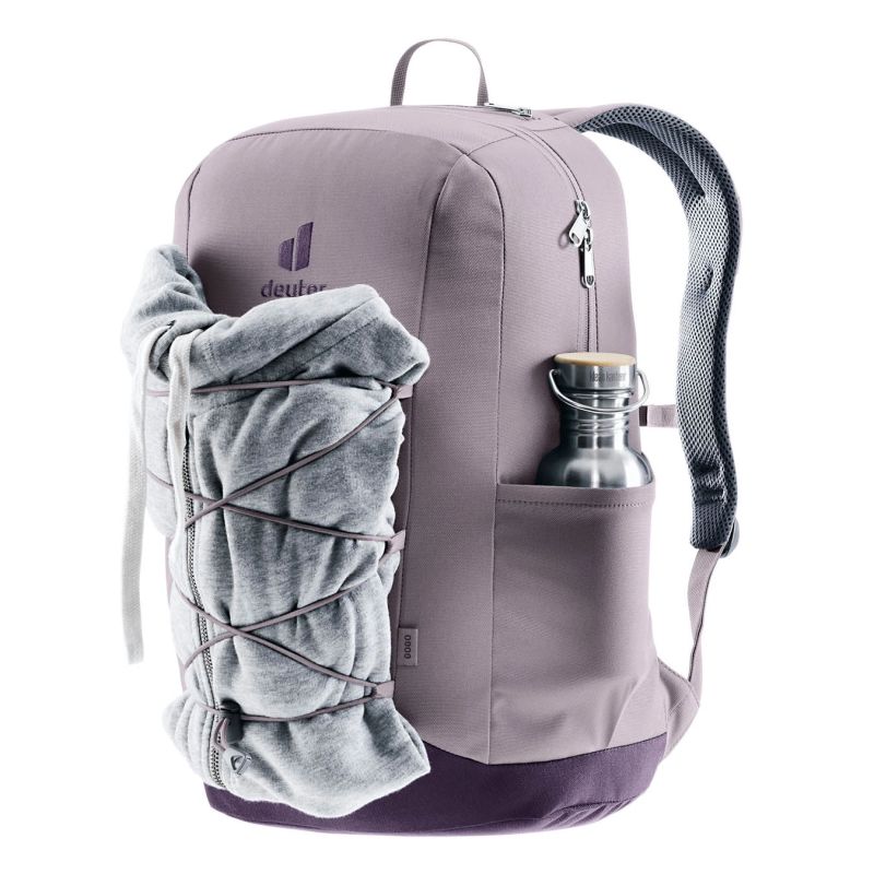 Der lavendelviolette Deuter Gogo 3813224-3531 Rucksack ist ein vielseitiger 25-Liter-Rucksack für den Alltag, der geringes Gewicht und modernes Design vereint. Hergestellt aus 600D PES REC BS und 150D PES , Materialien aus 100 % recycelten PET-Flaschen , ist er abriebfest und umweltfreundlich. Er ist bluesign®- , Green Button- und ClimatePartner- zertifiziert und somit umweltfreundlich und nachhaltig. Zudem ist er PFAS-frei .