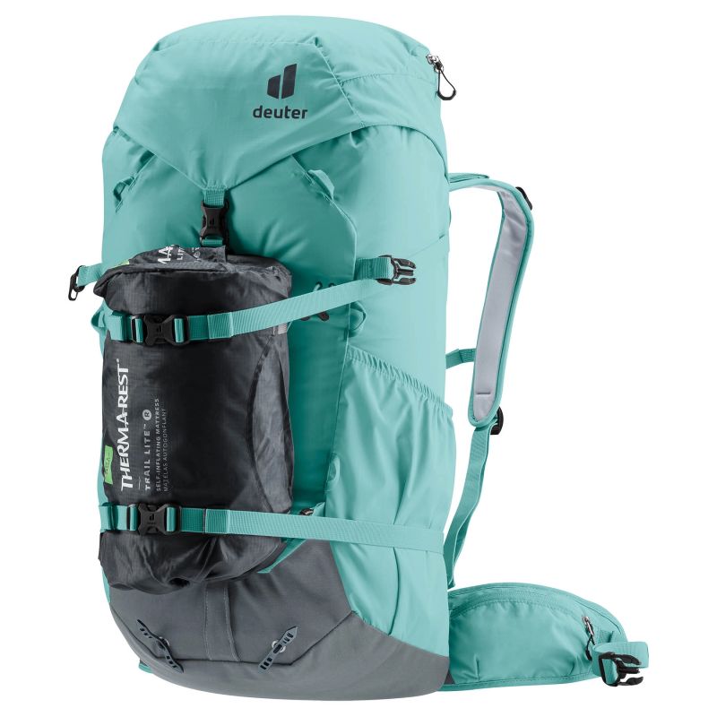 Der Deuter Gravity Expedition 45+ SL Dustblue Graphite ist ein Rucksack speziell für Frauen (SL-Version), die leichte, funktionelle und langlebige Ausrüstung für Bergtouren suchen. Mit einem Fassungsvermögen von 45 Litern, erweiterbar um weitere 10 Liter, bietet er ausreichend Platz für Kletterausrüstung, Kleidung und Proviant. Gefertigt aus strapazierfähigen, abriebfesten Materialien wiegt er nur 1,2 kg und ist damit die ideale Wahl für lange und anspruchsvolle Aufstiege. Sein schlankes Design erleichtert die Bewegung in anspruchsvollem Gelände, Befestigungspunkte für Eispickel und Stöcke, ein Brustgurt und ein Hüftgurt sorgen für Stabilität, und das minimalistische Deuter Lite Back System bietet Komfort bei geringem Gewicht.