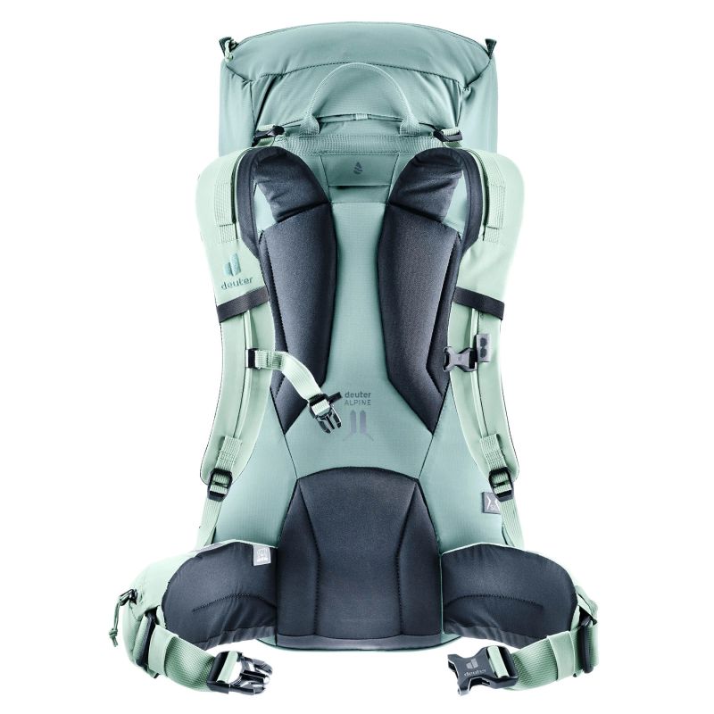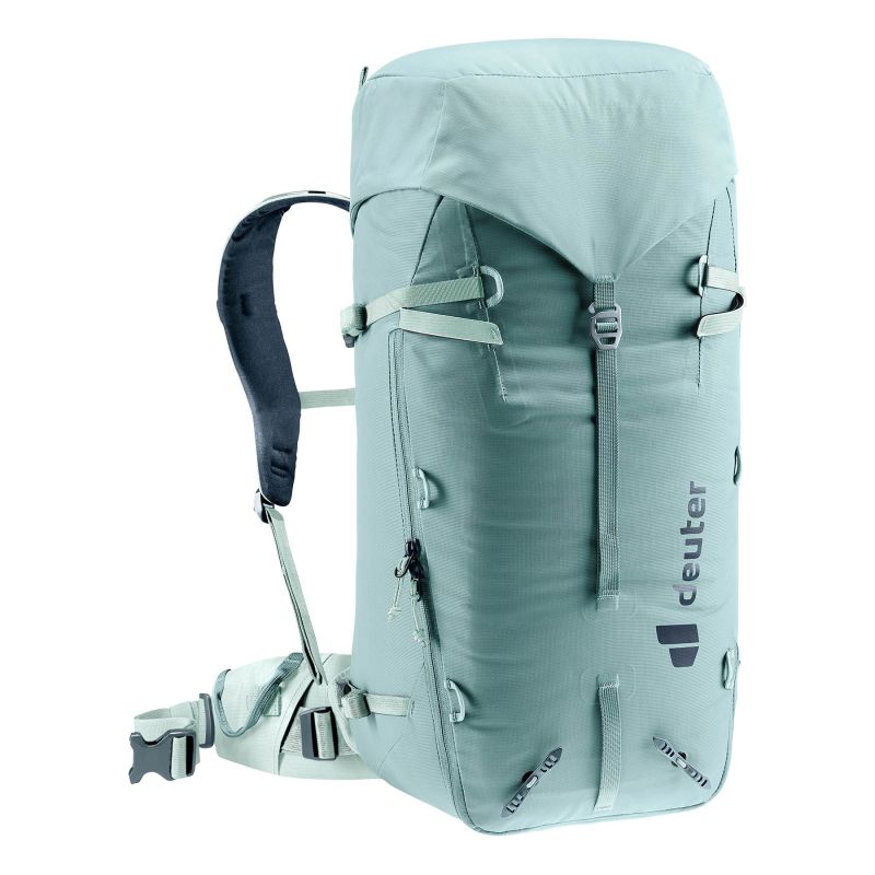 Der Deuter Guide 32+8 SL Jade Frost ist ein professioneller Bergsteigerrucksack speziell für Frauen. Die SL-Version bietet dank kürzerem Tragesystem und ergonomisch geformten Schultergurten eine frauenspezifische Passform. Mit 32 Litern Fassungsvermögen, erweiterbar um weitere 8 Liter, eignet er sich ideal für Tagestouren und mehrtägige Expeditionen. Das Alpine Back System aus strapazierfähigen, abriebfesten Materialien sorgt für Stabilität und Tragekomfort. Er verfügt außerdem über Halterungen für Eispickel und Trekkingstöcke, eine Seilbefestigung, Trinksystemkompatibilität und Helmkompatibilität. Die Farbe Jade Frost verleiht dem Rucksack einen modernen, sportlichen Touch.