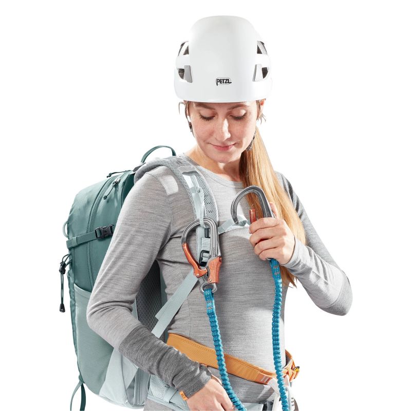 Der Rucksack hat ein Fassungsvermögen von 23 Litern (50 x 25 x 19 cm) und wiegt ca. 970 g. Hergestellt aus recycelten 600D- und 210D-Materialien, bluesign®-zertifiziert, PFAS-frei und DWR-behandelt. Das Airstripes-System mit perforierten Schultergurten und Hüftgurten sorgt für hervorragende Belüftung und gleichmäßige Gewichtsverteilung. Der Delrin®-U-Rahmen garantiert Stabilität ohne Übergewicht. Auf die weibliche Form zugeschnittene Active Fit-Gurte, ein verstellbarer Brustgurt und Schlaufen für Eispickel und Stöcke. Zur weiteren Ausstattung gehören eine eingenähte Neoprentasche, eine Regenhülle, Innentaschen (für Schlüssel und Wertsachen), elastische Seiten- und Fronttaschen, Kompressionsriemen und ein SOS-Label. Kompatibel mit einem 3-Liter-Trinksystem, empfohlene Belastung: 4–7 kg, für Benutzer mit einer Körpergröße von 158–178 cm und einer Rückenlänge von 38–48 cm.