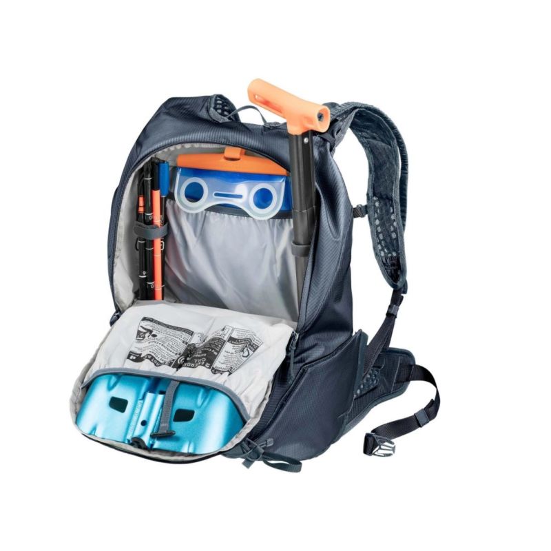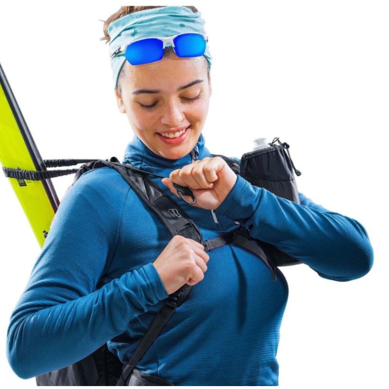 Besonderheiten: Klettlasche, Schlaufe und Gummizug mit Stopper für Eispickel oder Skitourenstöcke, diagonales Befestigungssystem für Skitourenski, Platz für eine 3-Liter-Trinkblase