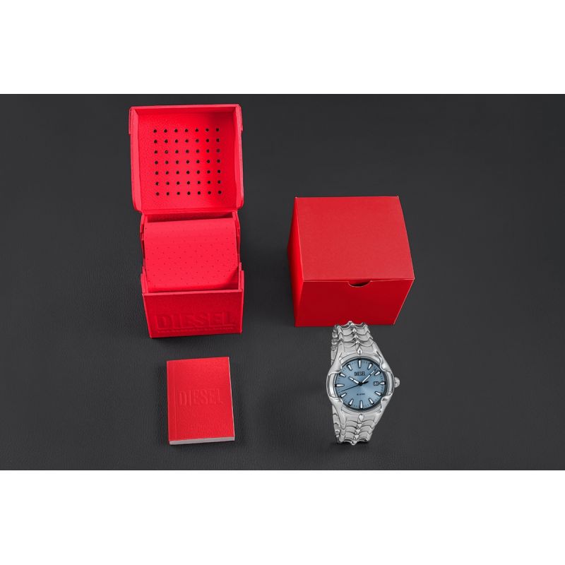 DIESEL ist eine Marke, die immer wieder beeindruckt – von der Uhr selbst bis hin zu jedem einzelnen Teil des Sets. Sie erhalten Ihr Set in einer originalen DIESEL-Markenbox – robust und stilvoll, ganz im Sinne des Markenimages. Sie ist mehr als nur eine Verpackung – sie ist ein Vorgeschmack auf das, was Sie im Inneren erwartet. Perfekt auf die Uhr abgestimmt, unterstreicht sie deren einzigartigen Charakter und macht sie zu einem exklusiven und hochwertigen Geschenk.