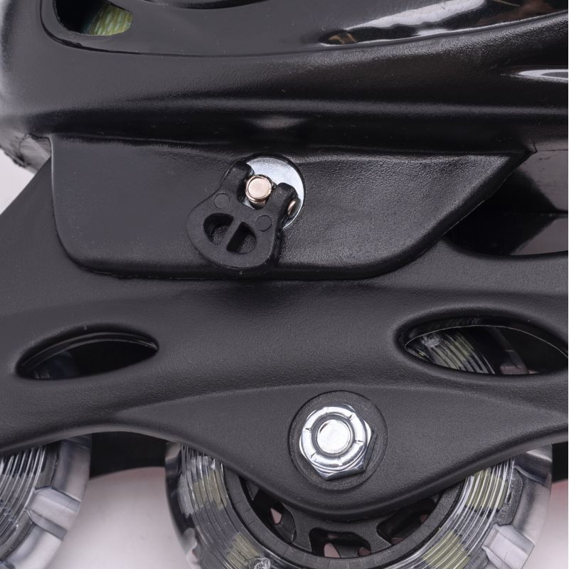 KINDER-INLINE-SKATES GRÖSSE: S (31-34), M (35-38) MATERIALZUSAMMENSETZUNG: - ROLLEN: PVC - LAGER: 608Z STAHL - BREMSE: TPR - RAHMEN: PP - SCHALE: PP - EINLEGESOHLE: VELOURS SPEZIFIKATION: - HARD BOOT - ROLLENGRÖSSE: 64 x 24 mm - ROLLENHÄRTE: 92A - BELÜFTUNG - GRÖSSE VERSTELLBAR