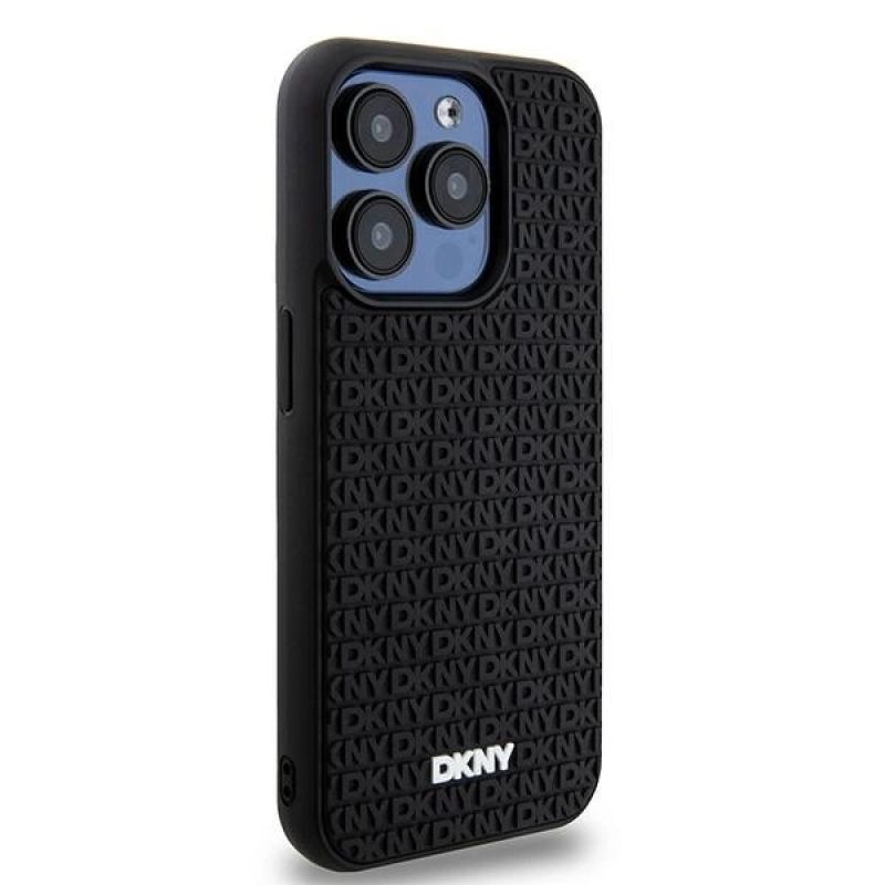DKNY 3D Rubber Repeat Pattern Hülle für iPhone 15 Pro – Schwarz