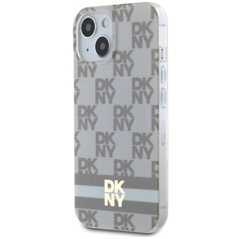 DKNY IML Checkered Mono Pattern & Printed Stripes MagSafe-Hülle für iPhone 15 / 14 / 13 – Beige
