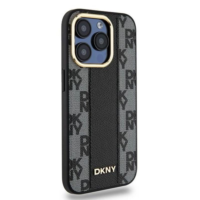 DKNY Leather Checkered Mono Pattern MagSafe-Hülle für iPhone 15 Pro – Schwarz