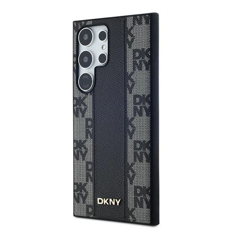 DKNY Leder-MagSafe-Hülle mit kariertem Monomuster für Samsung Galaxy S24 Ultra – Schwarz