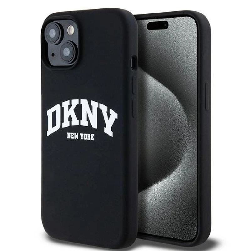 DKNY Liquid Silicone MagSafe Case mit weißem Logo-Aufdruck für iPhone 14/15/13 – Schwarz