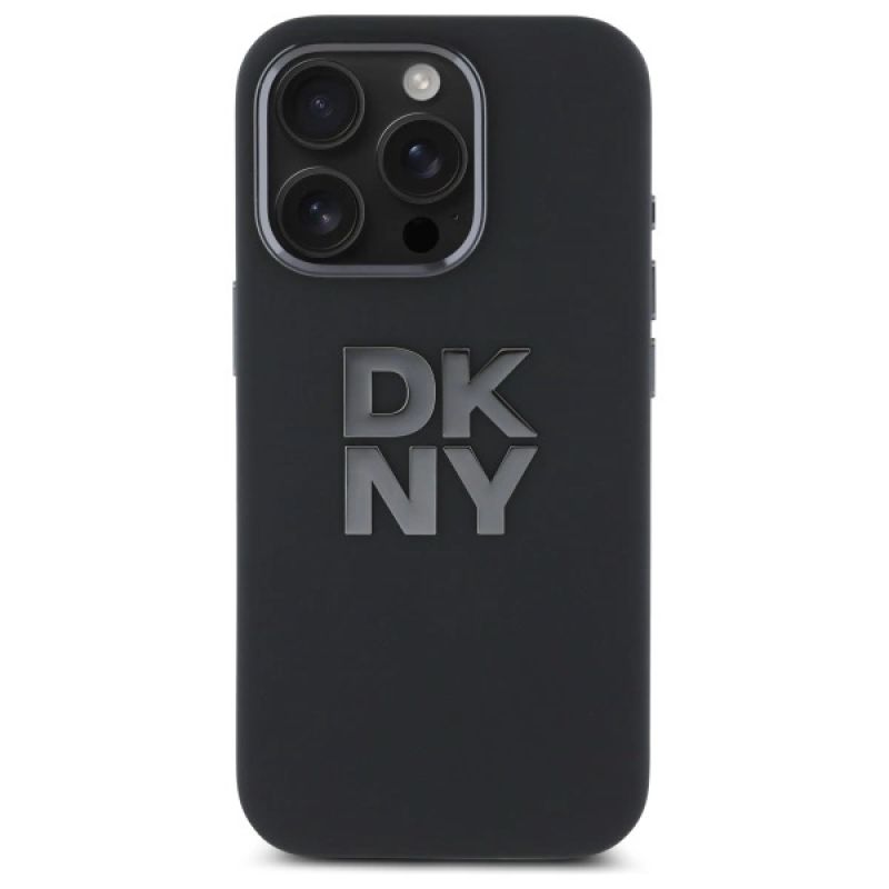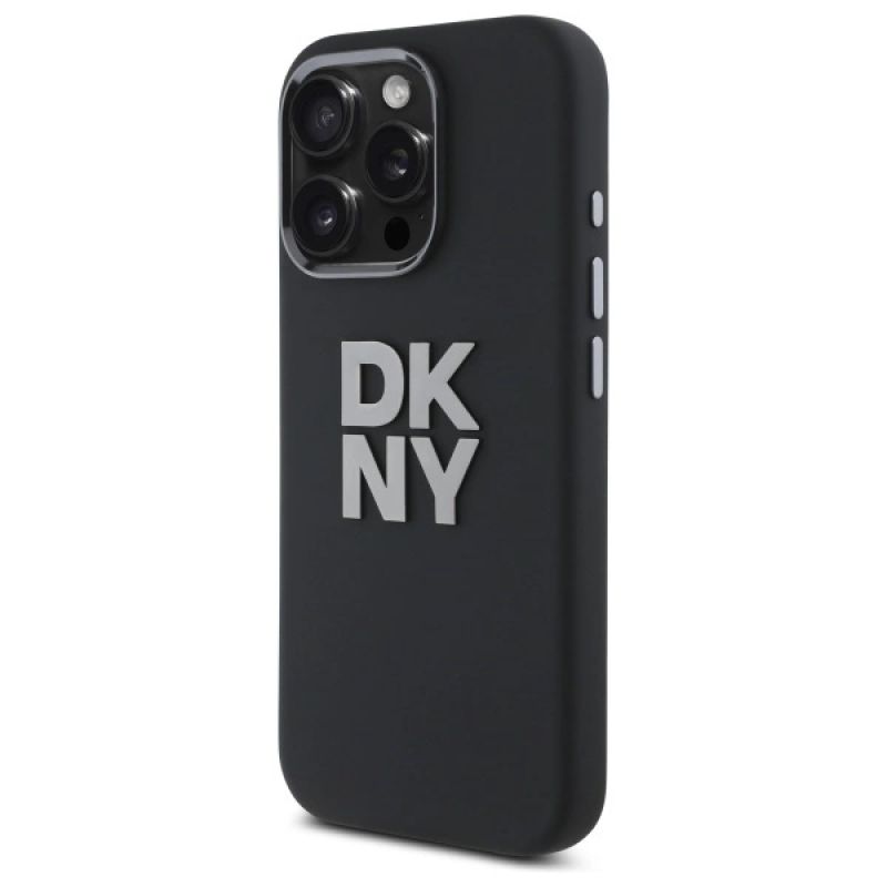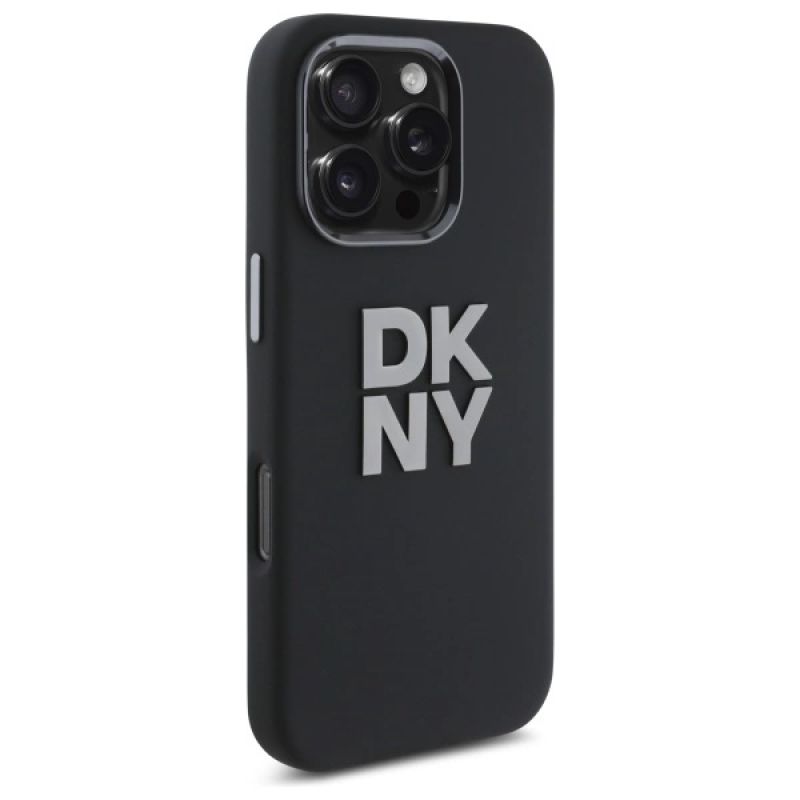 DKNY Liquid Silicone Metal Logo Hülle für iPhone 16 Pro Max – Schwarz