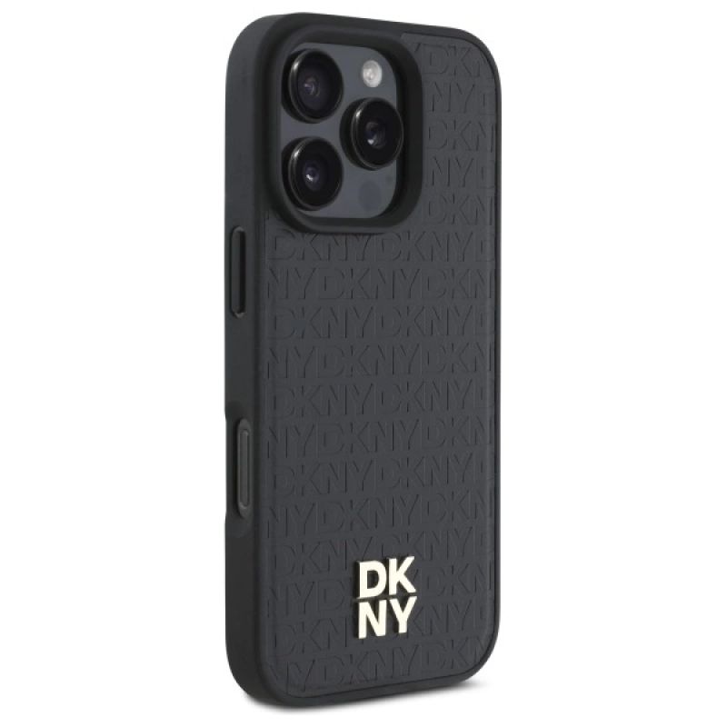 DKNY Repeat Pattern Stack Logo MagSafe-Hülle für iPhone 16 Pro Max – Schwarz