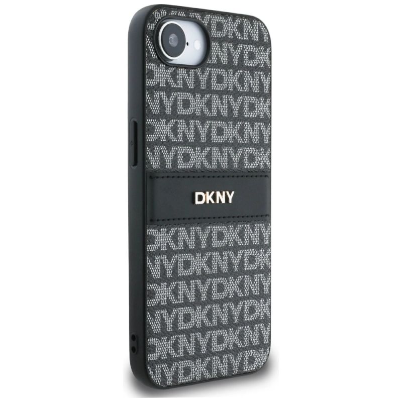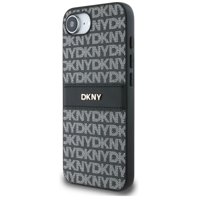 DKNY Repeat Texture Pattern with Tonal Stripe Hülle für iPhone 16e - Schwarz