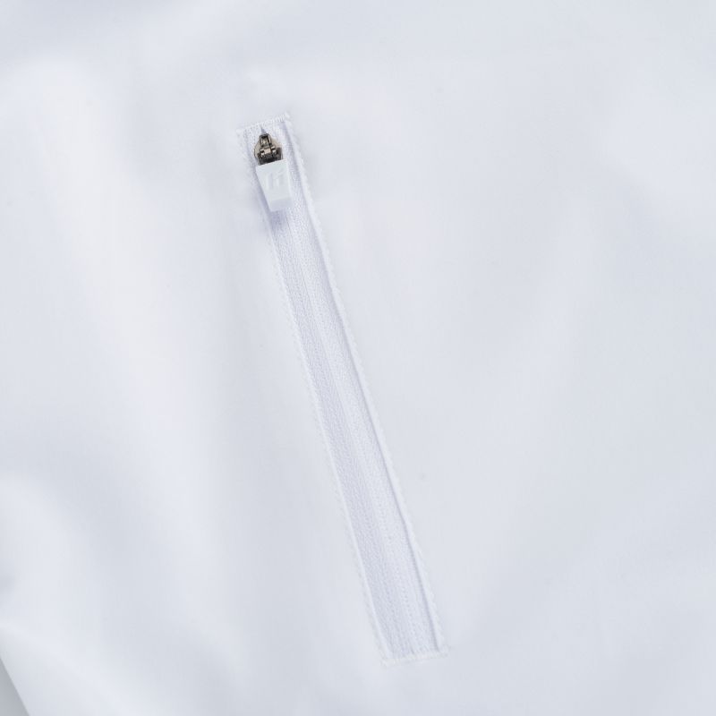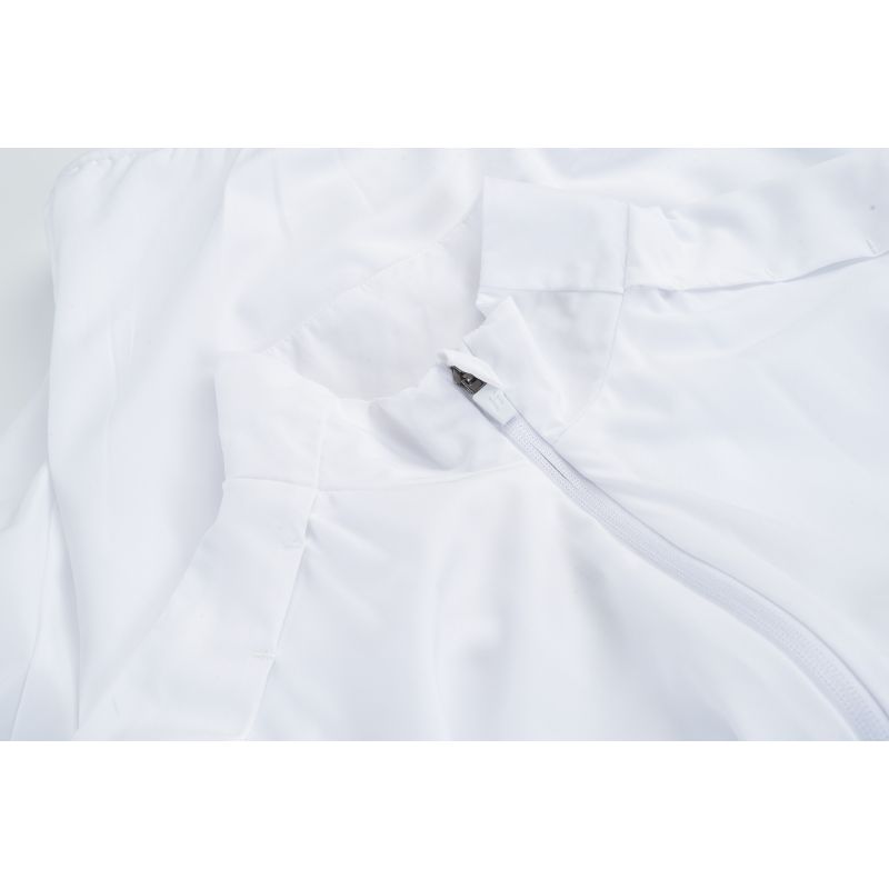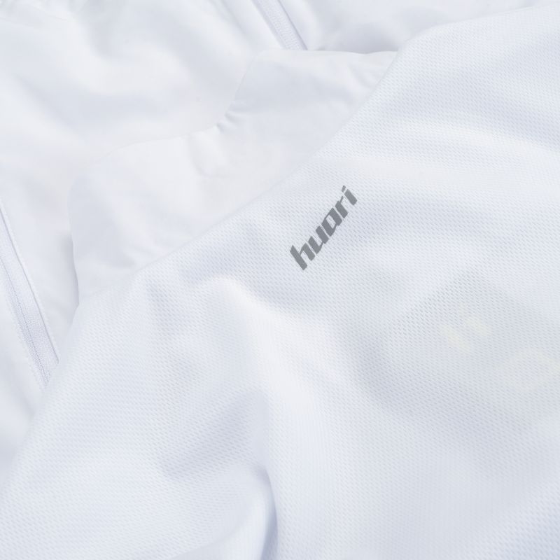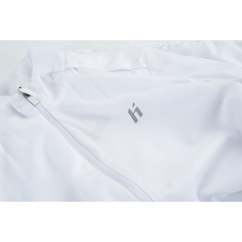 Trainingsjacke, Größen: S-XL, Materialzusammensetzung: Material 1: 94 % Polyester, 6 % Elastan; Material 2: 100 % Polyester. Eigenschaften: Atmungsaktiv, schnelltrocknend, reflektierende Elemente, Innentasche (seitlich), elastische 4-Wege-Stretchfasern.