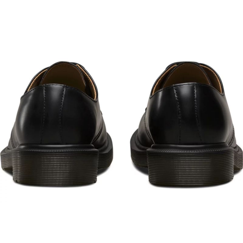 Der klassische Dr. Martens 1461: 3-Loch-Schnürung, bequeme AirWair-Sohle und eine solide schwarze Farbe dank des fehlenden charakteristischen gelben Fadens. Minimalistischer Stil und schlichte Formen sind immer in Mode, besonders wenn sie eine Plattform zur Selbstdarstellung bieten.