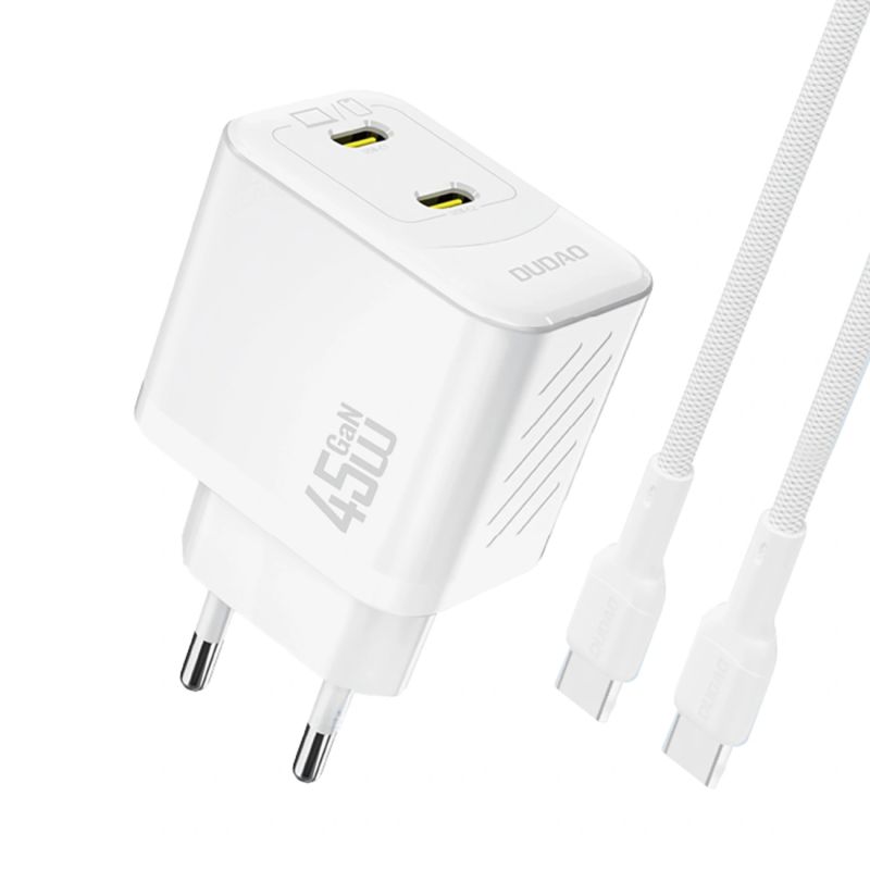 Dudao A28PCEU PD 45W GaN 2x USB-C Wandladegerät mit USB-C-Kabel – Weiß