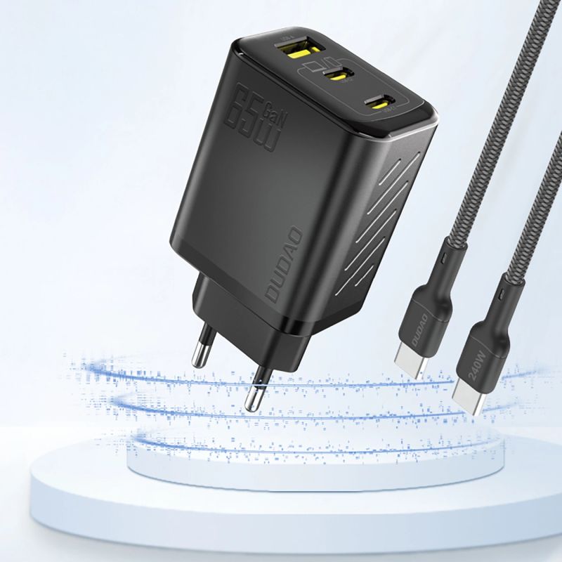 Dudao A29 65W GaN Wandladegerät 2 x USB-C + 1 x USB-A - Schwarz