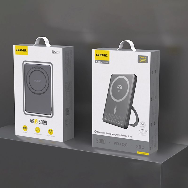 Dudao K28S 20W PD 5000mAh Powerbank mit MagSafe und Ständer - Grau