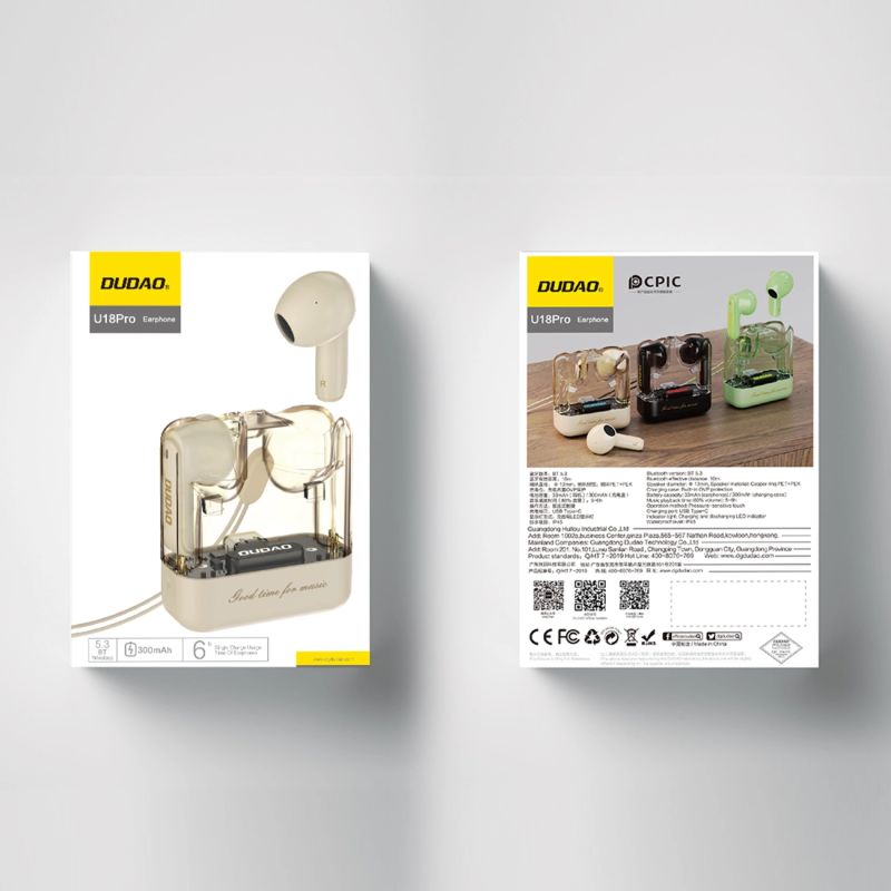 Egal, ob Sie unterwegs oder beim Training Musik hören, Dudao U18Pro sorgt für eine perfekte Passform. Ihr ergonomisches Design sorgt für angenehmen Tragekomfort und das transparente Gehäuse sorgt für Leichtigkeit und Stil.