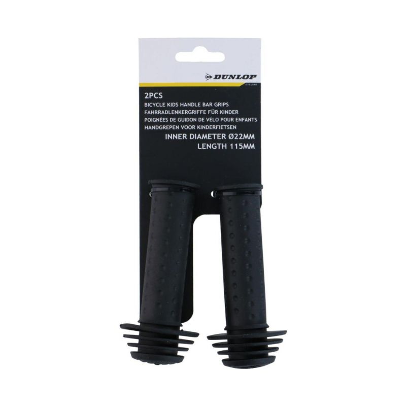 Ein Satz Lenkergriffe. Diese 115 mm großen Griffe passen auf Lenker mit 22 mm Durchmesser an 12- bis 20-Zoll-Kinderfahrrädern. Sie bestehen aus Kunststoff und sorgen für sicheren Halt und Komfort beim Fahren.