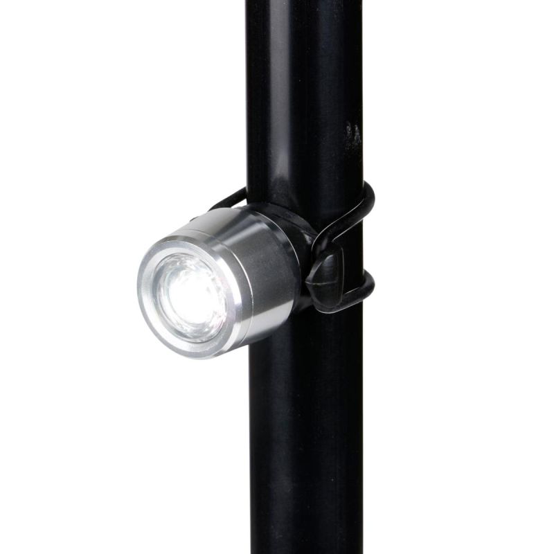 Dank der flexiblen Gummibandbefestigung lässt sich die Lampe ganz einfach und in Sekundenschnelle ohne Werkzeug an Lenker oder Gabel anbringen.