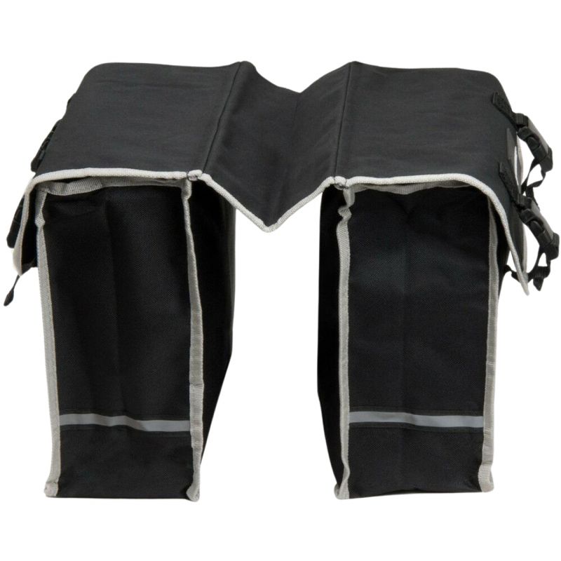 Die doppelten Gepäckträgertaschen werden mit starken Klettverschlüssen gesichert. Zwei seitliche Leiterschnallen. Reflektierende Elemente.