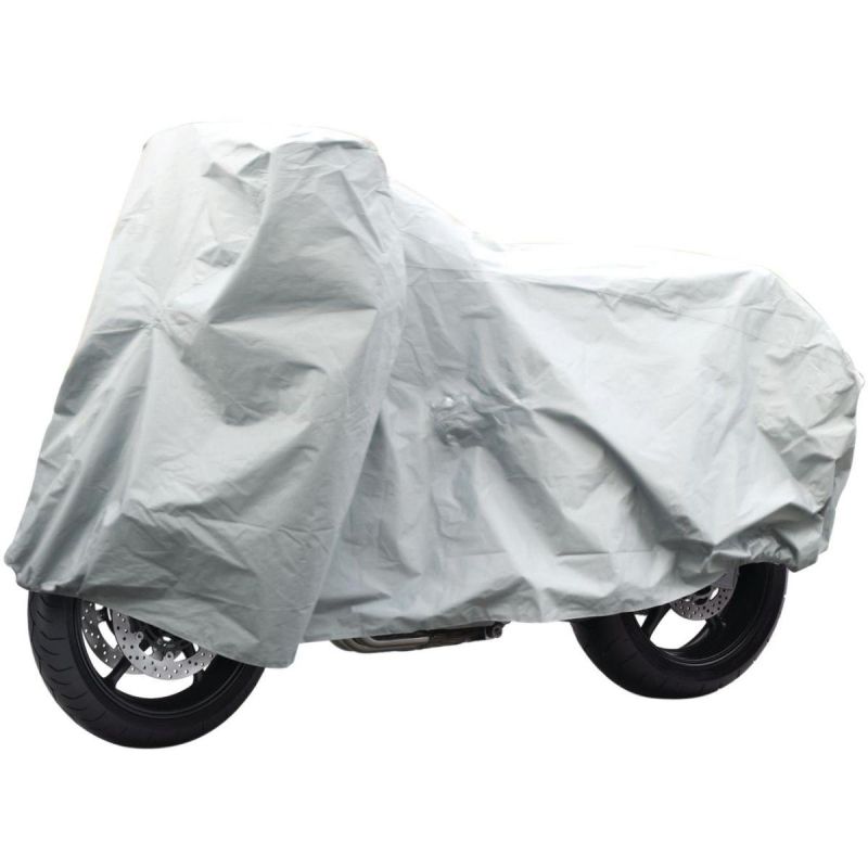 Die Motorradschutzhülle besteht aus robustem PVC und ist daher reißfest, UV-beständig und witterungsbeständig.