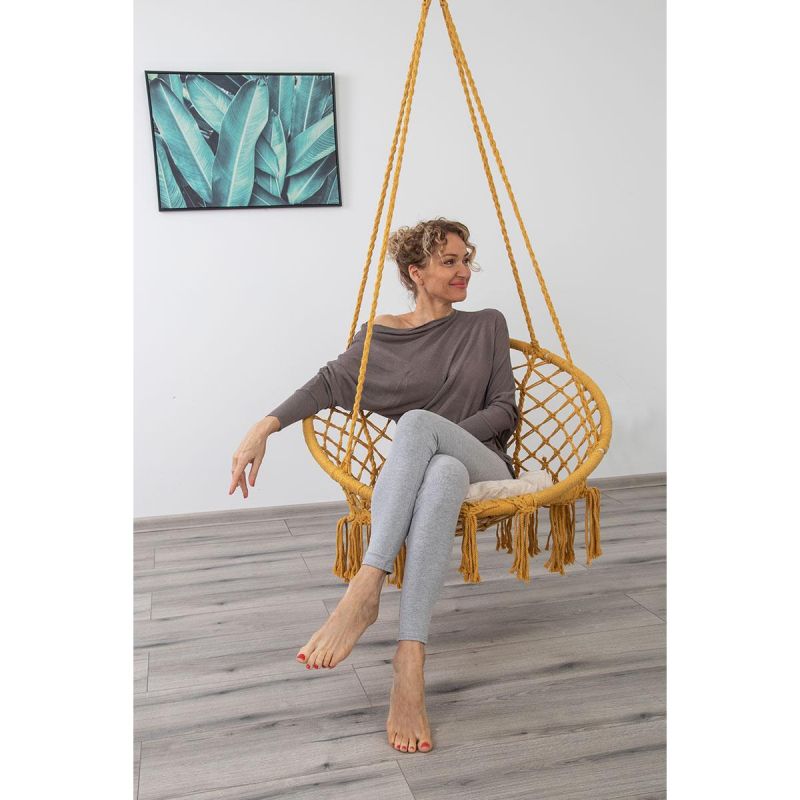 Lust auf etwas Luxus? Entspannen Sie sich, lassen Sie sich verwöhnen und schweben Sie auf Wolke sieben? Der 80 x 60 cm große Hängesessel mit Kissen und offenem Muster schafft Ihre traumhafte Entspannungsoase. Zögern Sie nicht – viele sind bereits begeistert!