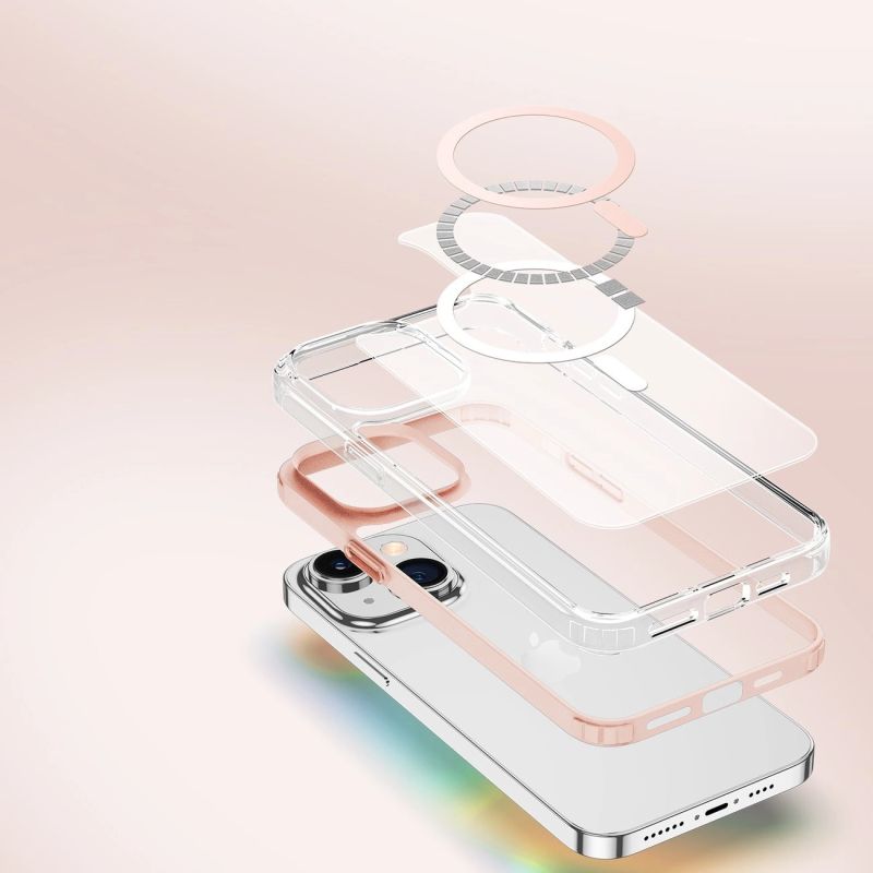 Magnetische Hülle für iPhone 14 Plus mit MagSafe mit rosa Rahmen