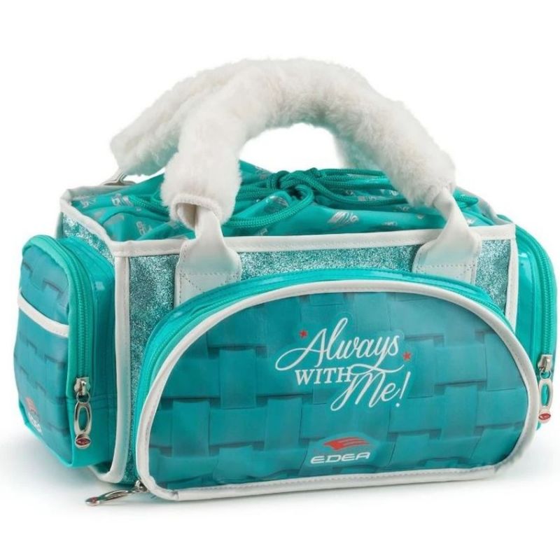Edea Always With Me Tasche. Eine schöne und äußerst praktische Tasche mit zahlreichen Aufbewahrungsmöglichkeiten. Konzipiert für alles, was Sie brauchen, und noch ein bisschen mehr! Sie bringt einen Hauch italienischen Stil auf die Eisbahn und darüber hinaus! Wichtige Eigenschaften: Bleiben Sie mit den neuesten Modetrends auf dem Laufenden mit der allseits beliebten With Me Tasche, jetzt erhältlich mit abnehmbaren Kunstfellgriffen, einem trendigen Korbgeflechtmuster und stilvollem weißen Besatz. 9 Taschen für Make-up, Handy, Handtuch, Getränke, Schlüssel, Tablet, Musik-CD und Schutzausrüstung. Alle sehr stilvoll und mit Reißverschluss. Die große Make-up-Tasche kann für einfachen Zugriff vollständig geöffnet werden. Konzipiert, um über den Griff des Edea Reflex-Trolleys geschoben zu werden.