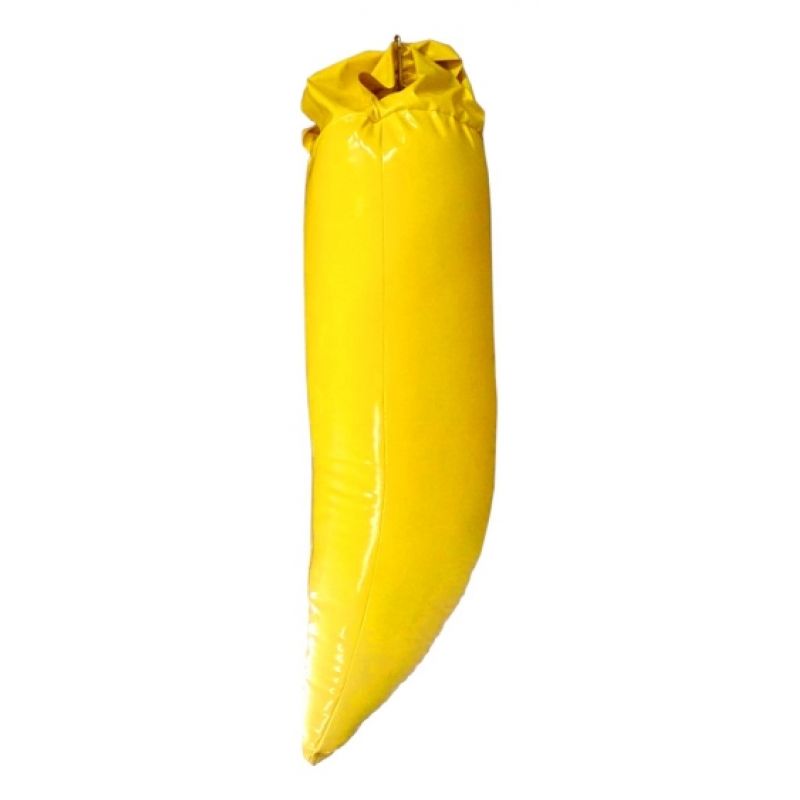 Eine gelbe, bananenförmige Plawil-Tasche auf Springseilen