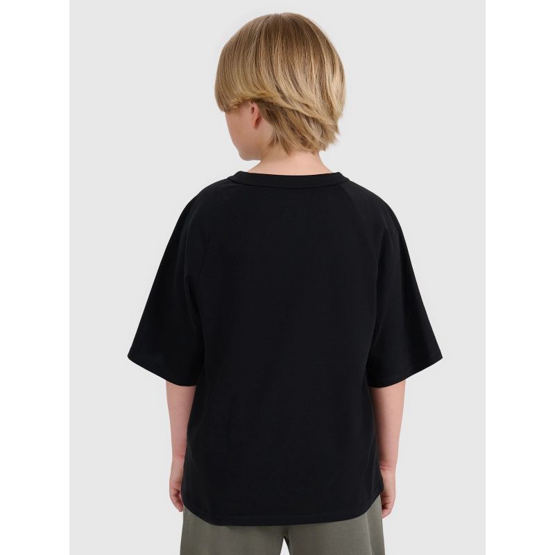 Ein schlichtes Jungen-T-Shirt ist ein vielseitiges Basic, das sowohl zu lässigen als auch zu sportlichen Outfits passt. Der lockere, übergroße Schnitt schmiegt sich angenehm an den Körper, ohne die Bewegungsfreiheit einzuschränken, während die Standardlänge bis zur Hüfte für Komfort im Alltag sorgt.