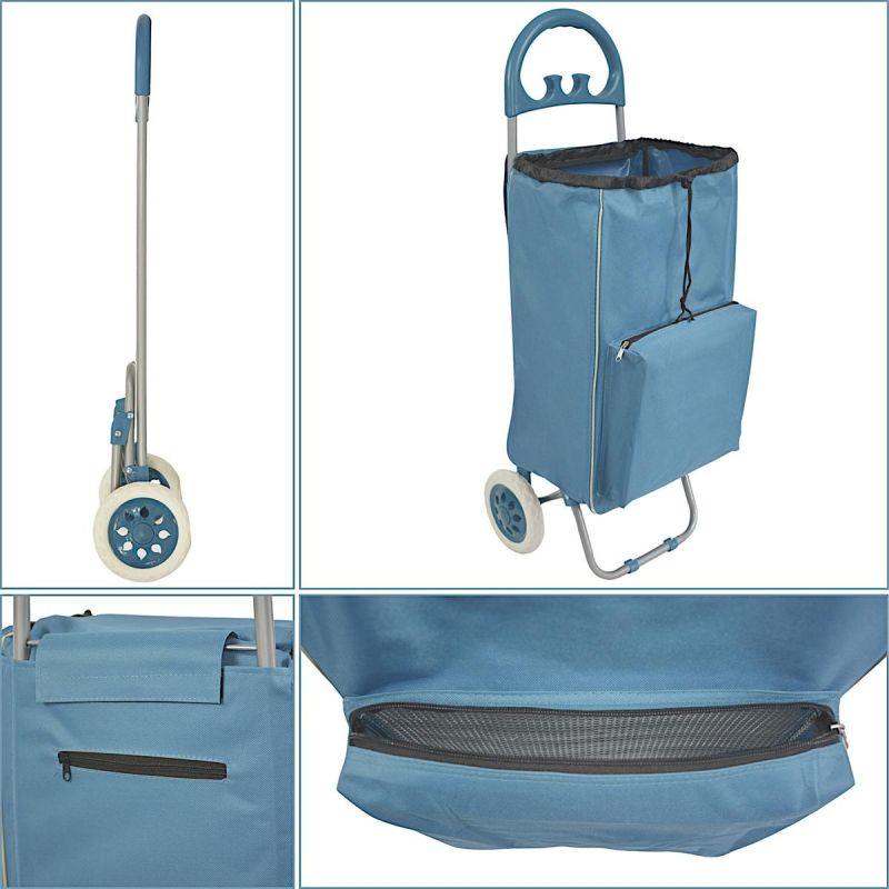 Die blaue Einkaufstasche mit 40 Litern Fassungsvermögen, Rollen und Gestell ist Ihr neuer Begleiter für den täglichen Einkauf. Leicht, geräumig, mit einem stabilen Gestell und leichtgängigen Rollen. Schluss mit schweren Taschen und Rückenschmerzen – jetzt können Sie alles bequem, mühelos und stilvoll einpacken!