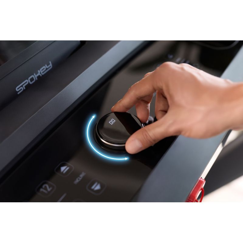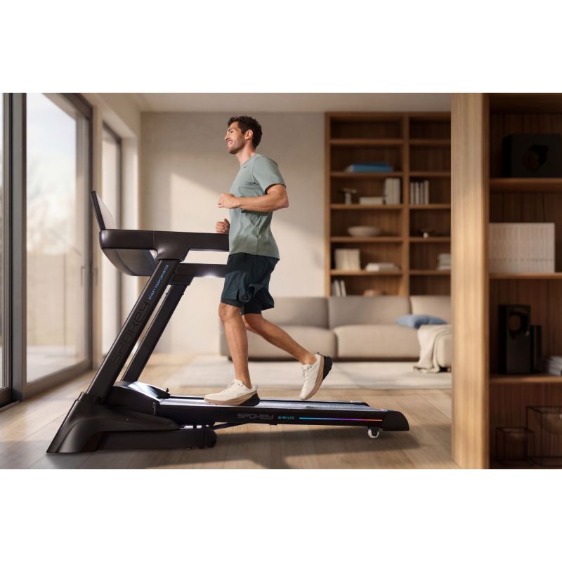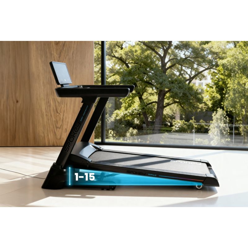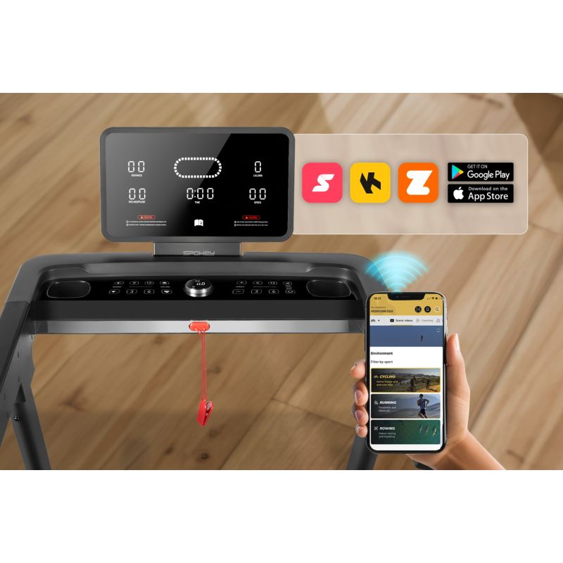 Dieses moderne Laufband ist mit einem bürstenlosen Motor ausgestattet, der sich durch höhere Langlebigkeit und Zuverlässigkeit auszeichnet. Der Verzicht auf Bürsten ermöglicht einen kompakten und leichten Motor, was zu einer besseren Energieeffizienz führt. Ein großes LED-Display ermöglicht Ihnen die Überwachung von Zeit, Distanz, Geschwindigkeit und Herzfrequenz. 12 Trainingsprogramme und die einstellbare Neigung ermöglichen Ihnen ein optimales Training. Das faltbare Design und die Transportrollen erleichtern den Transport und die Lagerung. Technische Daten: Typ: Elektrisches Laufband Motorleistung: 3,5 PS bürstenloser Motor Höchstgeschwindigkeit: 18 km/h Steigung: 1–15 Stufen, automatisch Anzeige: LED-Display Funktionen: Zeit, Distanz, Geschwindigkeit, Puls, Kalorien, Steigung, Pause Pulsmessung: ja Anzahl Trainingsprogramme: 12 Apps: Spax, Zwift, Kinomap Bluetooth: ja eingebaute Lautsprecher Maße: 190 x 84 x 139 cm Maße nach dem Zusammenklappen: 130 x 84 x 139 cm Laufbandgröße: 138 x 50 cm Lagerung: vertikal einfache Schmiervorrichtung Gewicht: 80 kg max. Benutzergewicht: 140 kg Transportrollen: ja Sicherheitshinweise: Setzen Sie das Laufband niemals Feuchtigkeit oder Regen aus. Das Laufband ist nicht für den Einsatz im Freien vorgesehen. Es sollte nicht in der Nähe eines Schwimmbeckens oder anderen Umgebungen mit hoher Luftfeuchtigkeit verwendet werden. GEFAHR – Ein unsachgemäßer Anschluss des Geräteschutzleiters kann zu Stromschlaggefahr führen. Wenn Sie Zweifel haben, ob das Produkt richtig geerdet ist, wenden Sie sich an einen qualifizierten Elektriker oder Servicetechniker. Verändern Sie den mitgelieferten Stecker nicht – wenn er nicht in die Steckdose passt, lassen Sie von einem qualifizierten Elektriker eine geeignete Steckdose installieren. WARNUNG! Wenn Sie während des Trainings Schmerzen oder Druck in der Brust, unregelmäßigen Herzschlag, Kurzatmigkeit, Ohnmacht oder Unwohlsein verspüren, BEENDEN SIE DAS TRAINING SOFORT! Suchen Sie einen Arzt auf, bevor Sie fortfahren. Dieses Gerät ist nicht für den Gebrauch durch Personen (einschließlich Kinder) mit eingeschränkten körperlichen Fähigkeiten, physischen oder geistigen Behinderungen oder durch Personen bestimmt, die keine Erfahrung mit dem Training auf ähnlichen Geräten haben oder nicht ausreichend informiert sind und die Bedienungsanleitung des Laufbands nicht gelesen haben. Diese Personen sollten nur unter strenger Aufsicht einer autorisierten Person auf dem Gerät trainieren, die direkt für ihre Sicherheit verantwortlich ist. Kinder dürfen unter keinen Umständen mit dem Gerät spielen.
