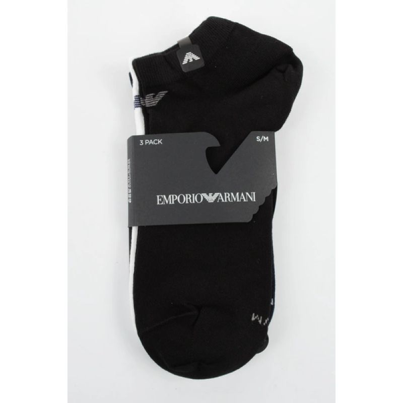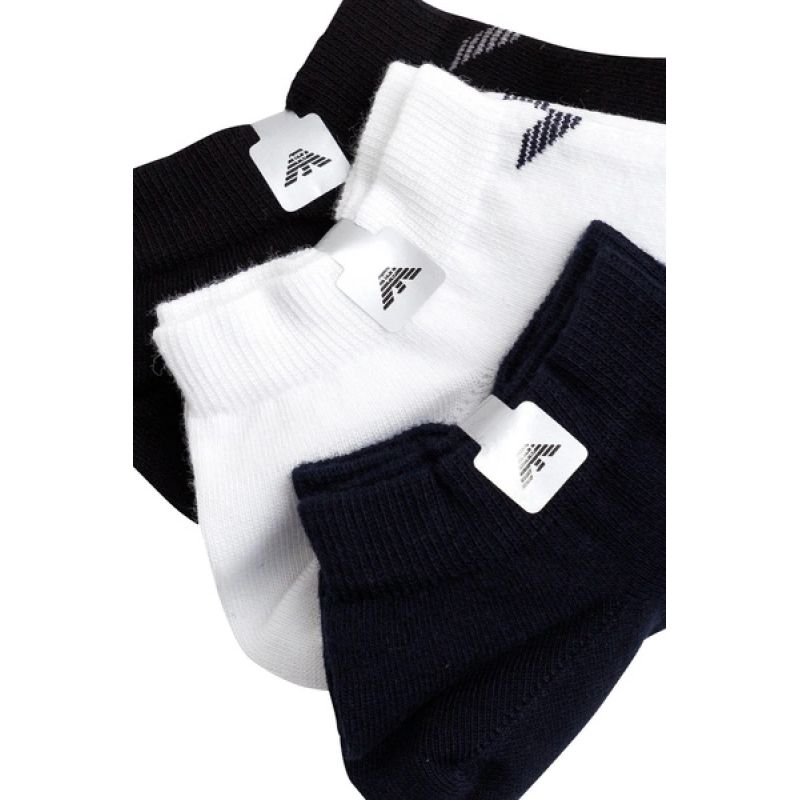 Emporio Armani Calza Knöchelsocken aus Baumwolle, bequem, 3er-Pack, Marineblau, Schwarz, Weiß